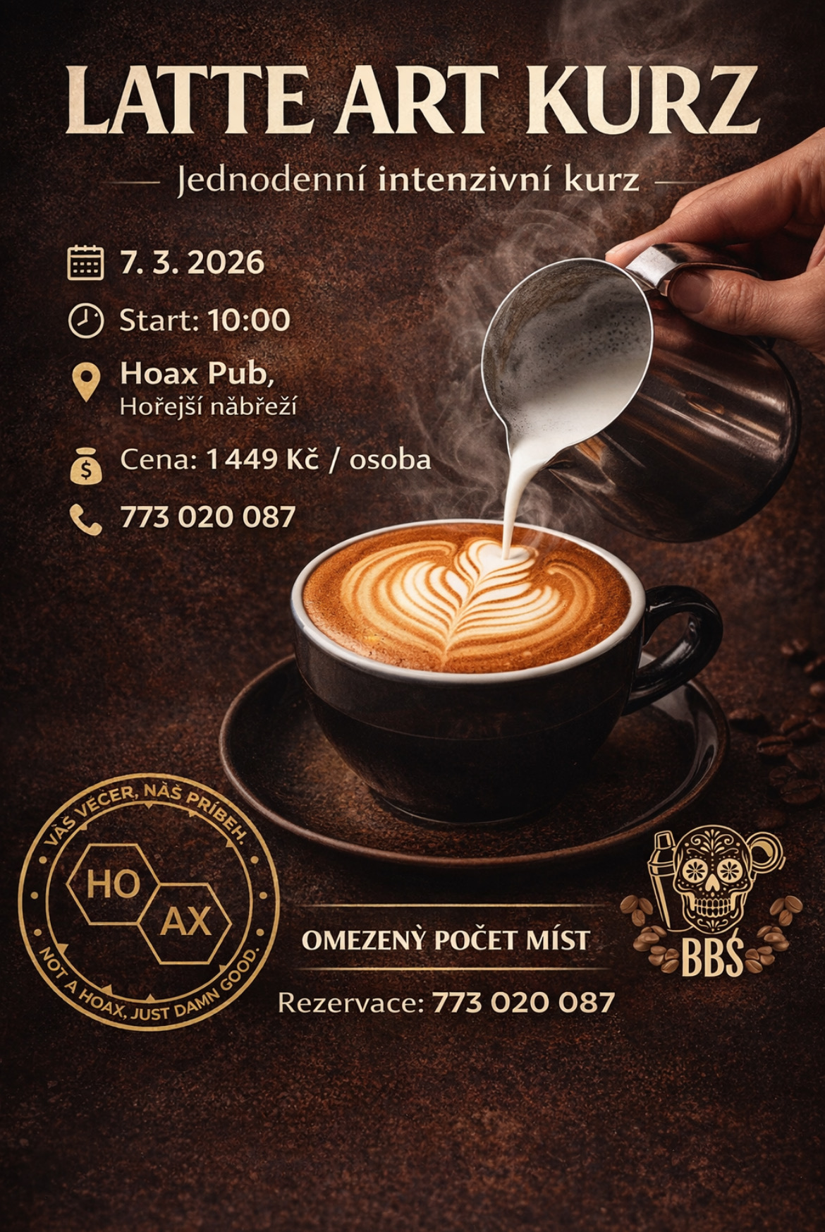 Kurz je zaměřen na estetiku kávy – od správného šlehání mléka po kreslení na pěnu