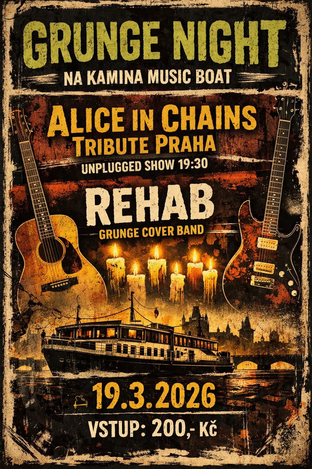 "Přijď nasát syrovou atmosféru devadesátek na jedinečný večer ve znamení grunge!Čeká tě temná,unplugged nálada i pořádně našlapané cover verze legendárních kapel"