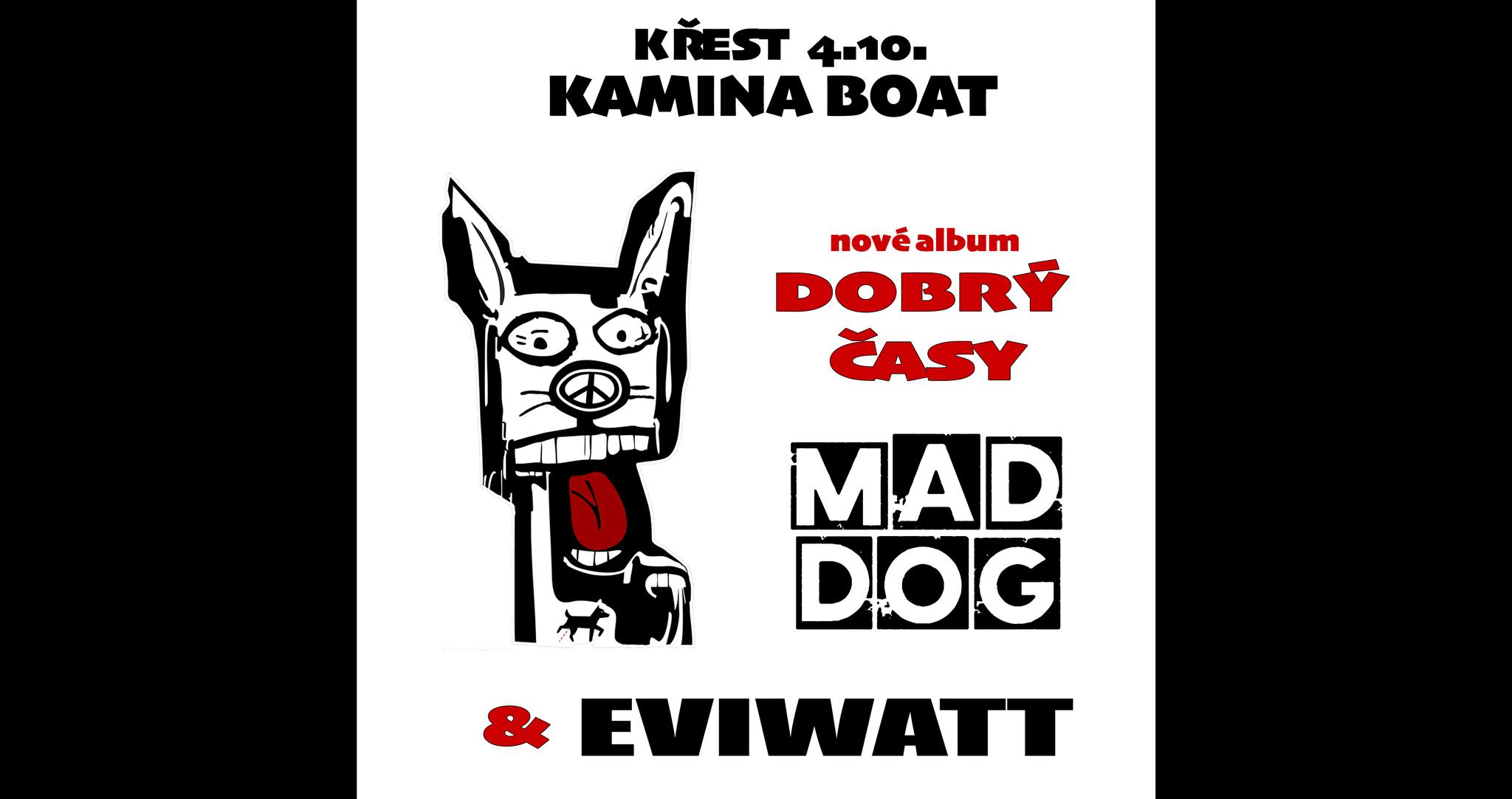 Kapela Mad Dog a křest jejího alba Dobrý Časy,to bude dnes na programu našeho hudebního klubu v podpalubí lodi Kamina. Také si užijte progresivní kapelu Eviwatt z Příbrami.