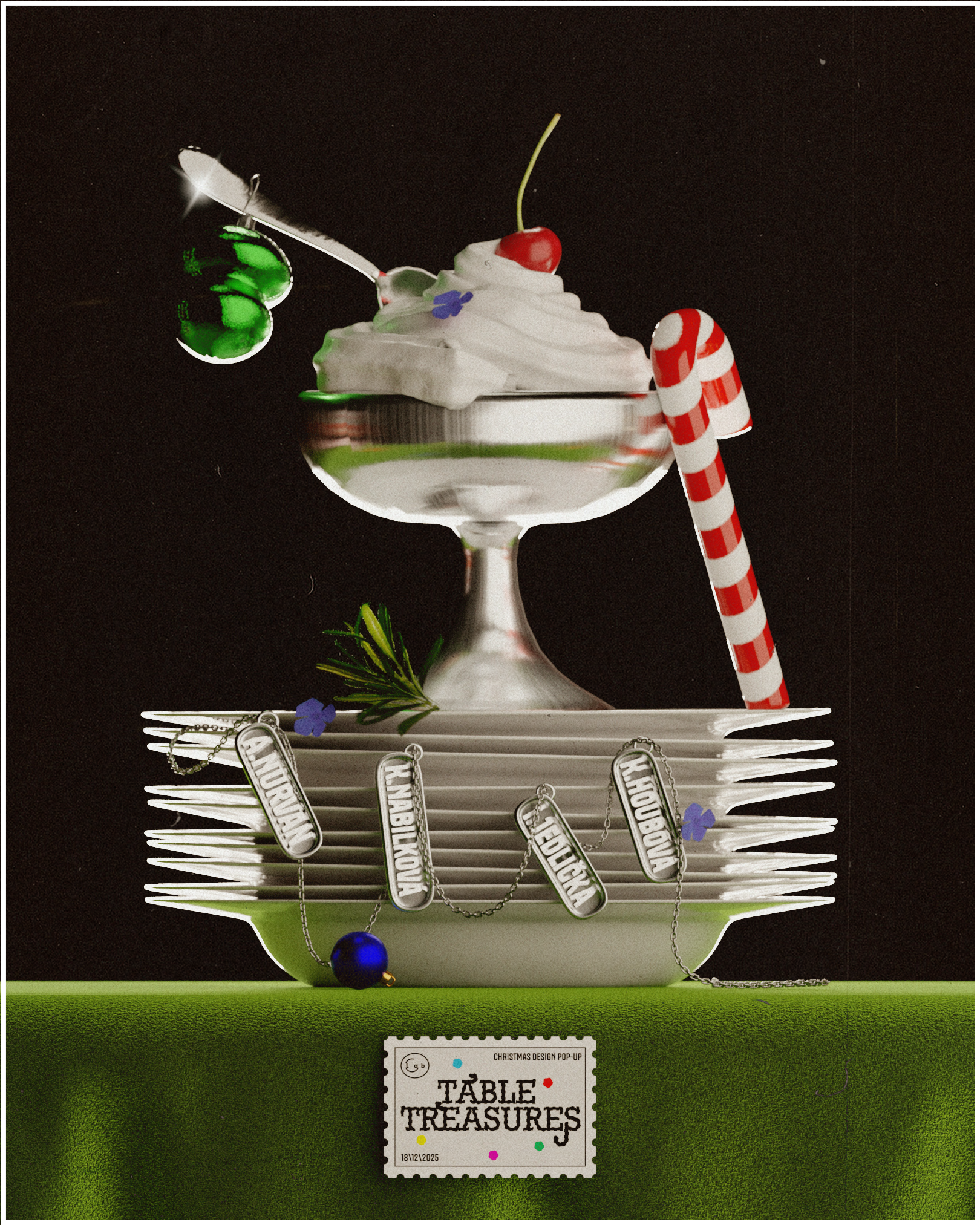 Table Treasures je vánoční pop-up čtyř mladých designérů a designérek. Jejich práce s materiálem je citlivá, experimentální a má osobitou vizuální poetikou. Těšit se můžete na autorský šperk, sklo, keramiku a porcelán pro stolování i originální dárky s příběhem.